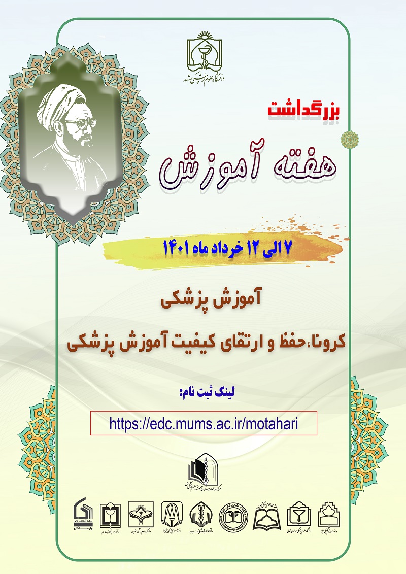 پانزدهمین جشنواره آموزشی شهید مطهری با شعارآموزش پزشکی،کروناحفظ و ارتقا کیفیت آموزش پزشکی . در دو بخش دانشگاهی و کشوری از شنبه 7 خرداد لغایت 12 خرداد ماه 1401 به مبزبانی دانشگاه علوم پزشکی مشهد برگزار خواهد شد از علاقه مندان به شرکت در جشنواره دعوت میشود به سایت جشنواره به نشانی ذیل مراجعه نمایید .
